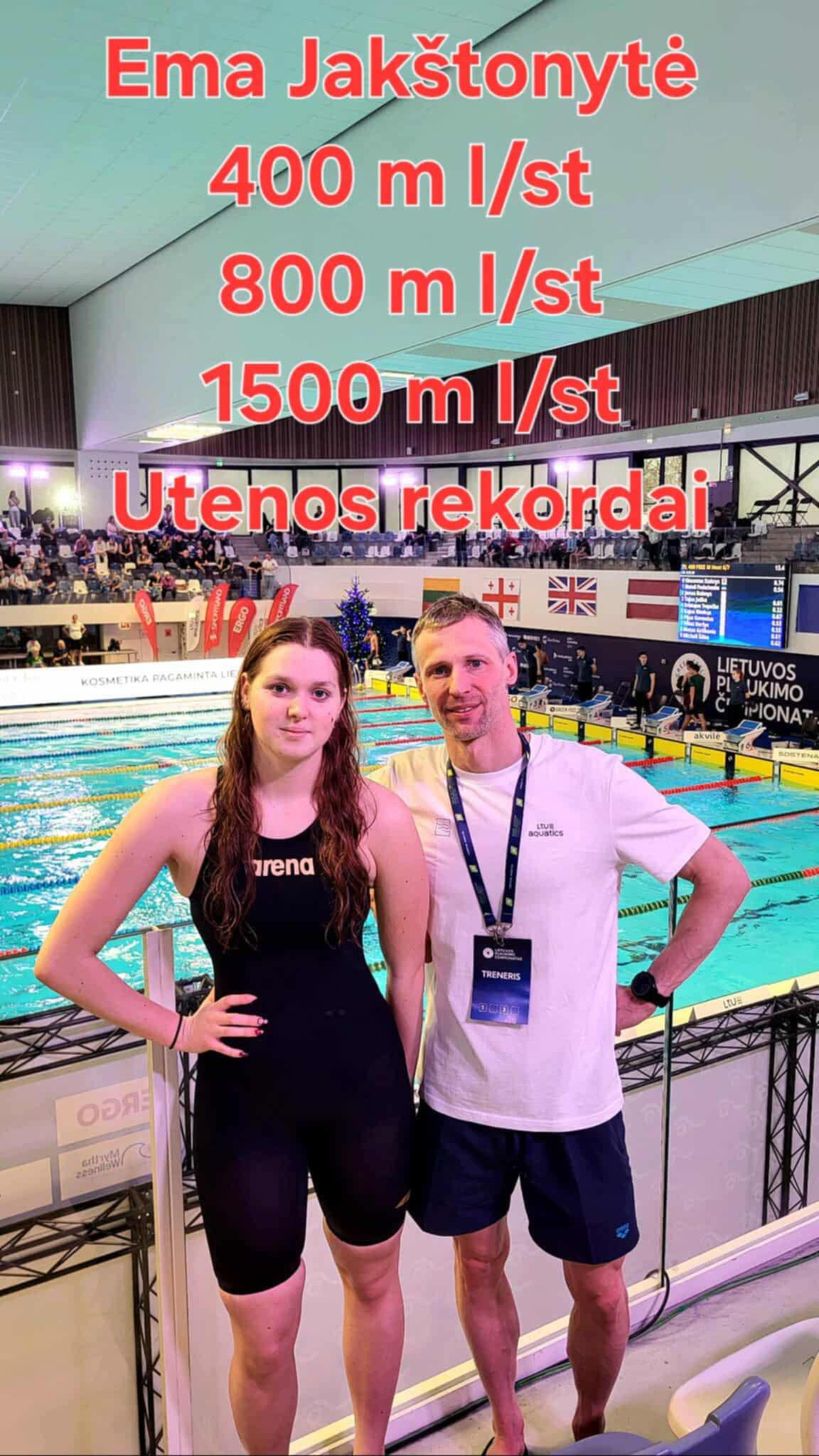 1500 m laisvuoju stiliumi – 5 vieta ir Utenos rekordas (anksčiau priklausė Medai Mikučionytei) 💥