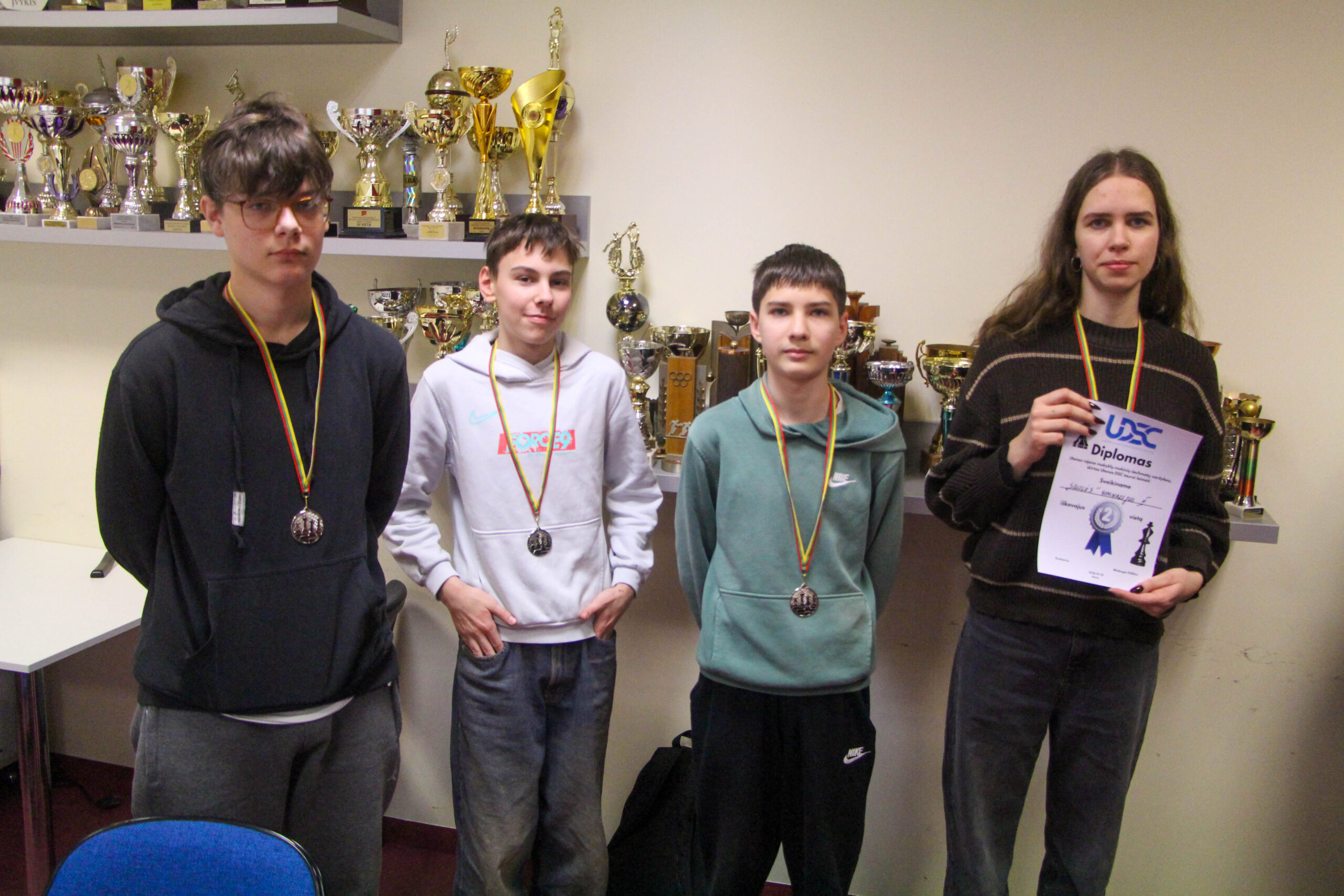 Denis Skuodys, Gabija Bikutė, Karina Tuškevičiūtė, Martynas Stankevičius). Komandos vadovės: Jurgita Jankauskaitė ir Greta Diakė.