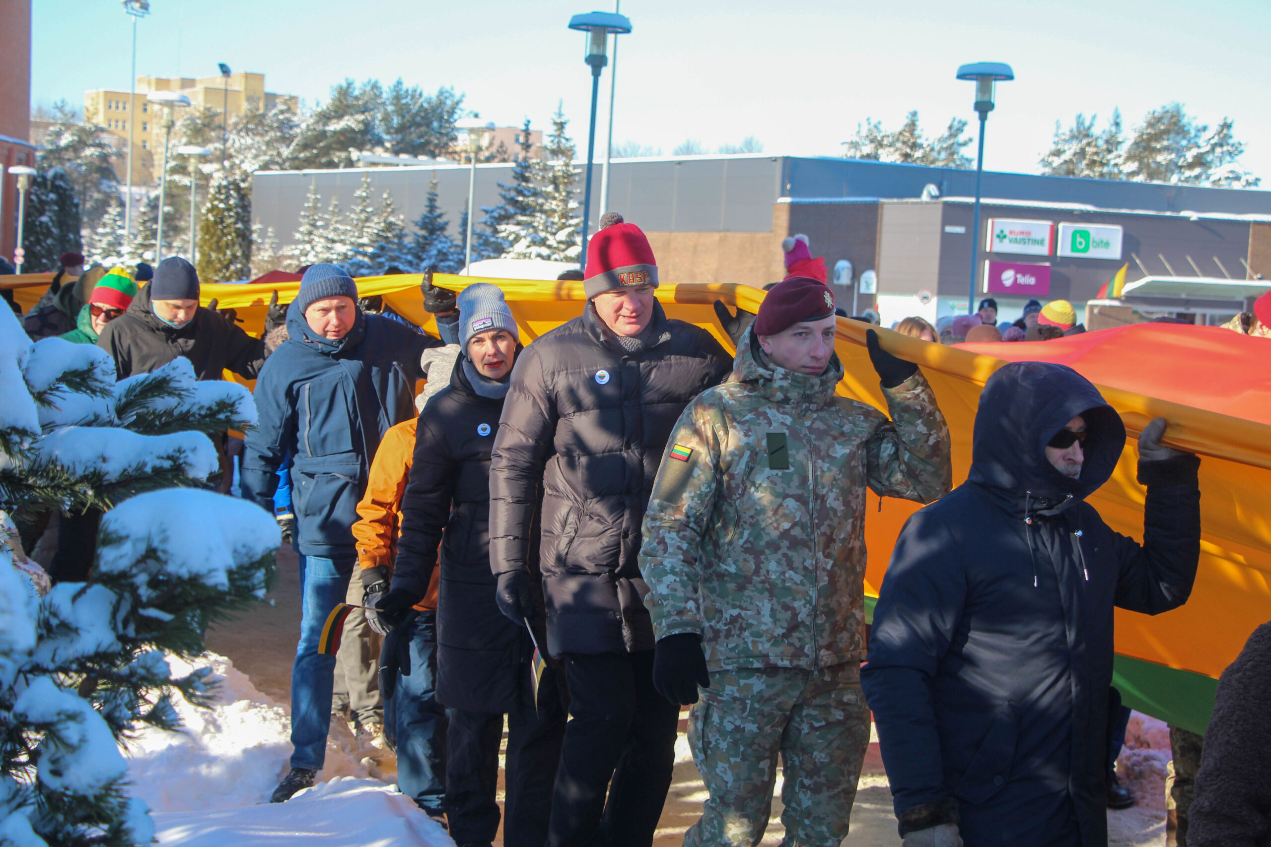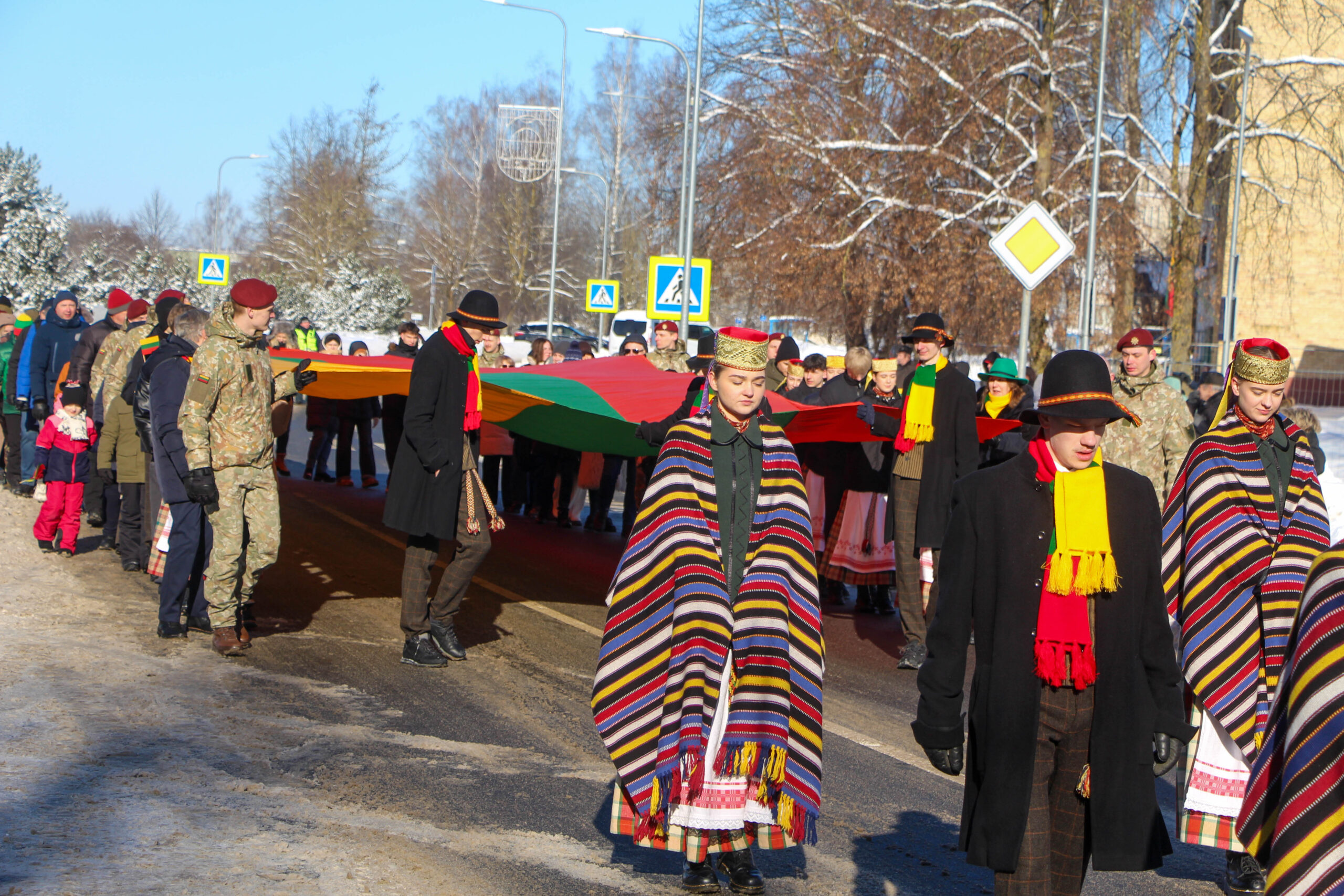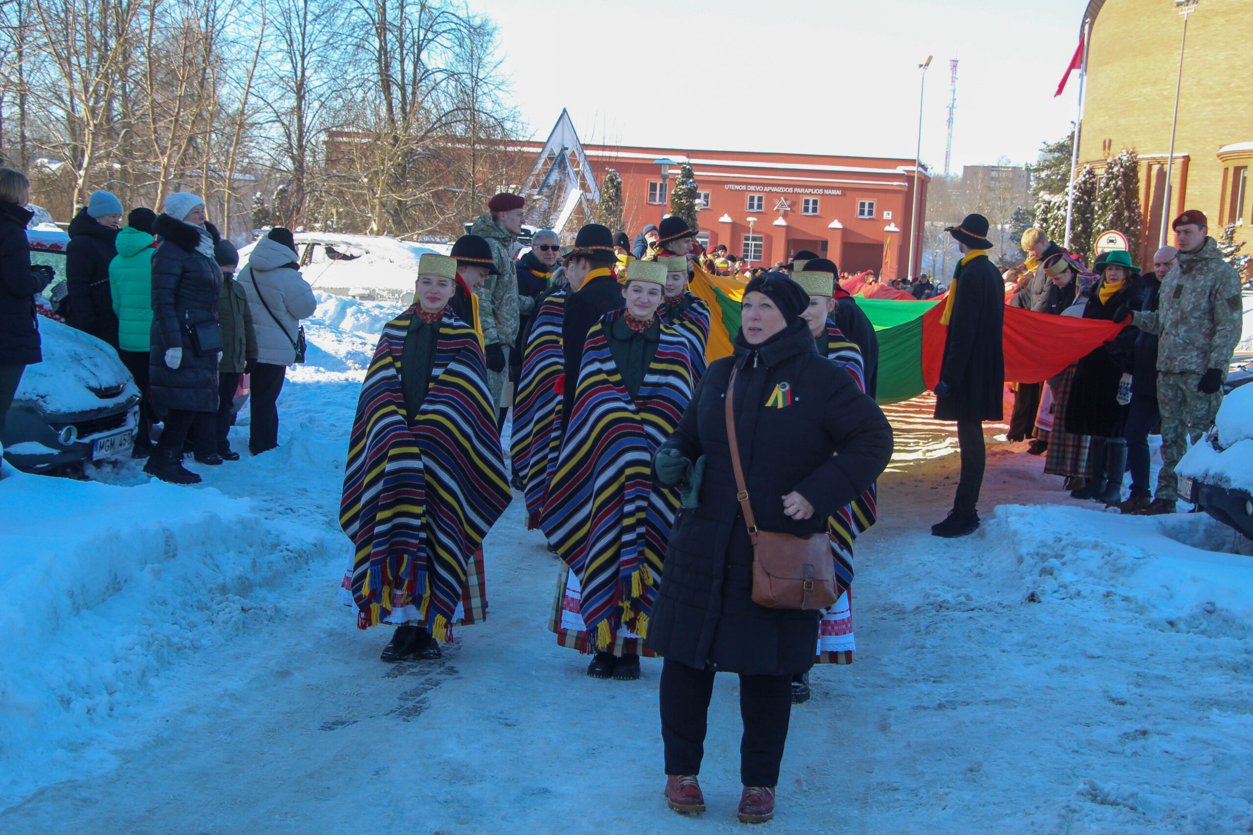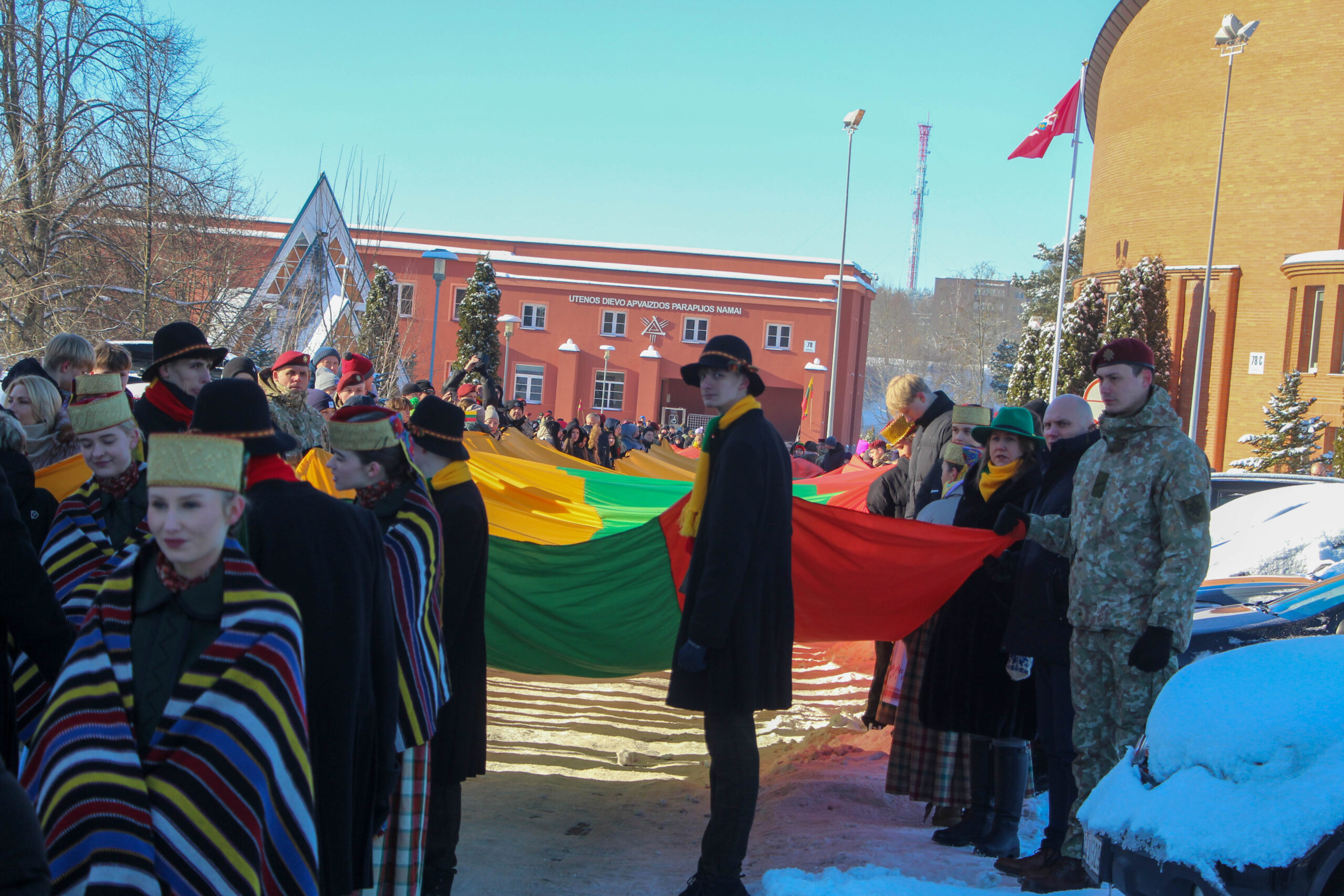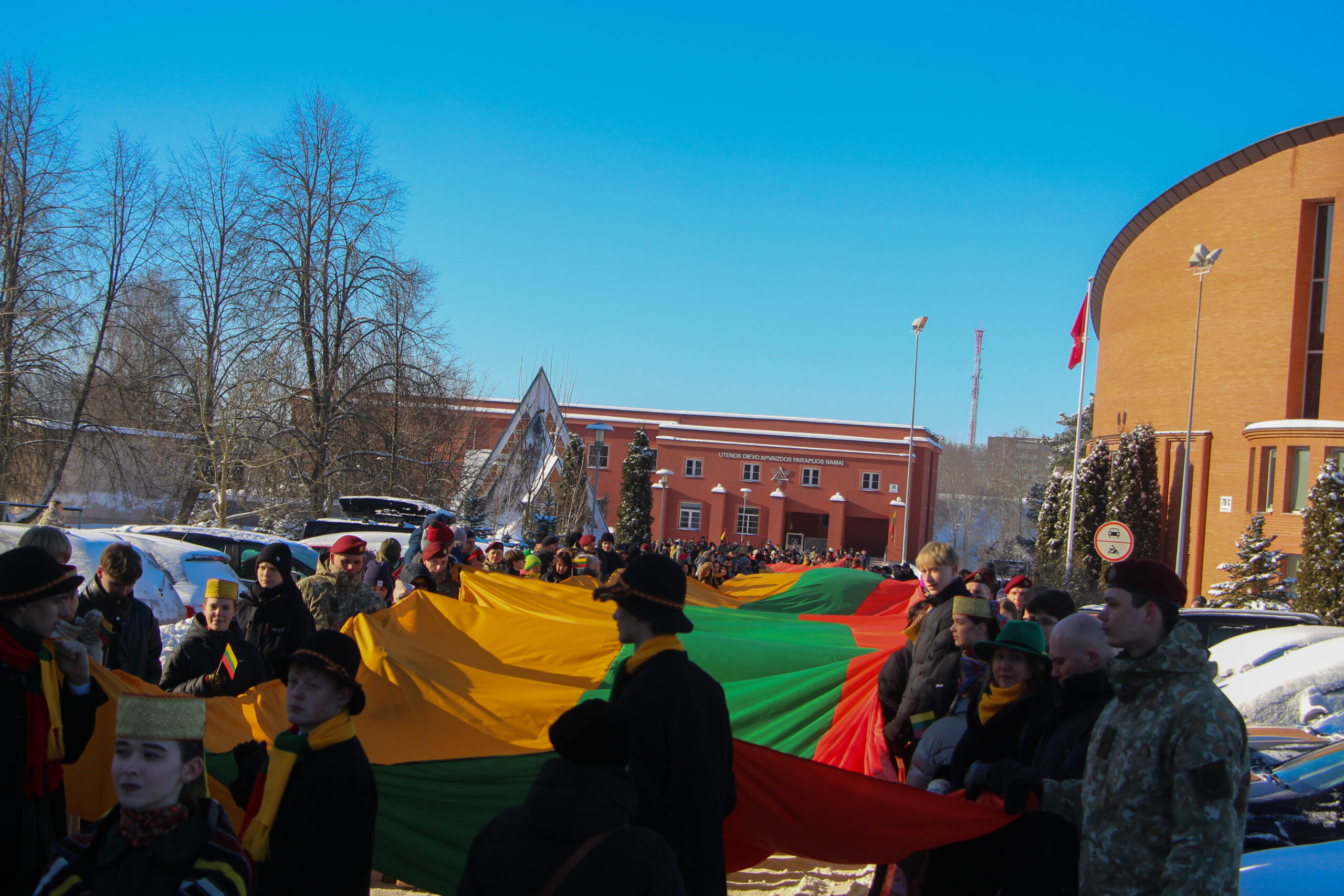 Šventinė eisena su trispalve sėkmingai nužygiavo nuo Utenos Dievo Apvaizdos bažnyčios iki stadiono prie Utenos Adolfo Šapokos gimnazijos.